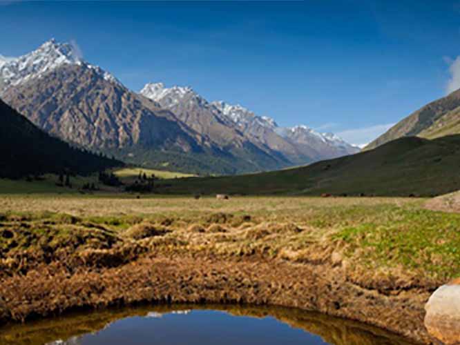 В ущелье Арашан много живописных зеленых полянок, выходов родников с холодной чистой водой, имеется водопад.